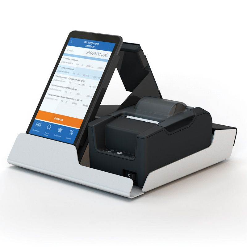 POS-система ШТРИХ-М Штрих-TAB – уникальная пос-система, состоящая из подставки (с встроенным USB-хабом), которая объединяет всю систему, планшета с ярким 7 дюймовым экраном, с мощной начинкой и установленной операционной системой Android. Крепится планшет с помощью неодимовых магнитов и металлической пластины. Печатающий чеки Фискальный регистратор соответствует всем требованиям 54-ФЗ и передаёт фискальные данные в ОФД. Сhip&PIN терминал от сервиса 2can, для эквайринга. Данная система обладает всем необходимым для автоматизации места кассира. В программном обеспечении предустановленном в планшет помимо основных функций, заложены такие как: различные способы регистрация продаж, контроль за действиями кассиров, бонусы и скидки. Есть возможность подключения дополнительного сервиса «Облачная касса» все данные будут передаваться и храниться в “облаке”, что обеспечит дополнительную безопасность и контроль работы.